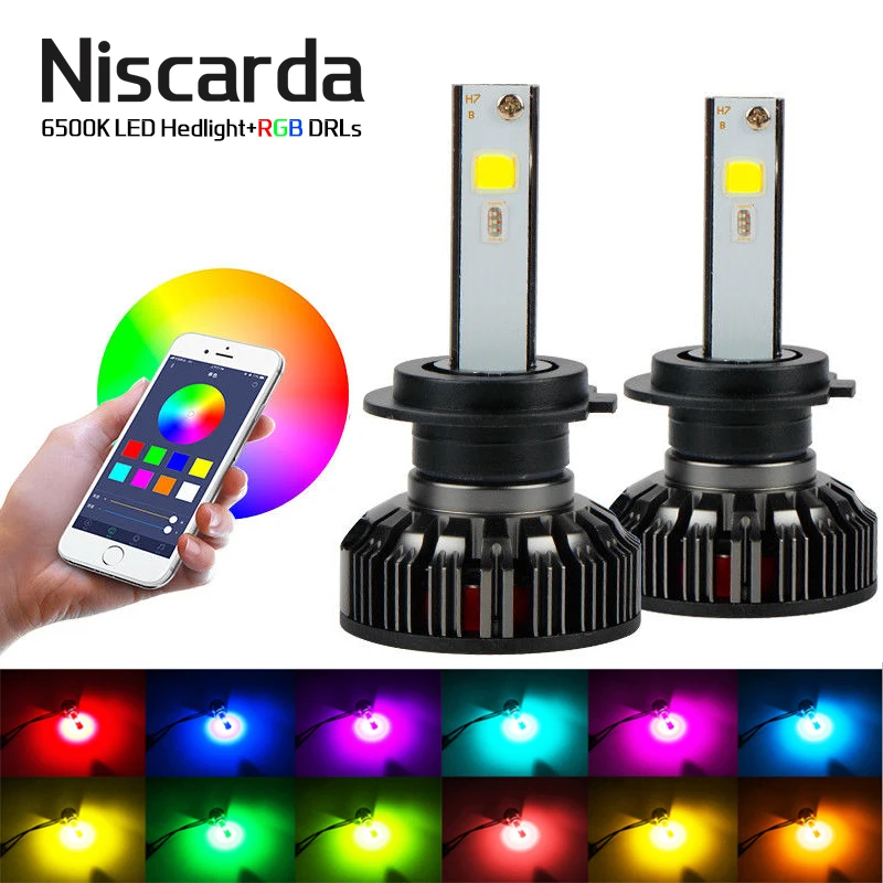 Goede Koop Niscarda H7 RGB LED Koplamp H1 APP Bluetooth Controle H3 H4 H8 H11 Multi Kleuren LED Lampen 9005 9006 Goedkoop